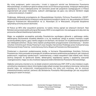 Za wspólne działania w tej sprawie serdeczne podziękowania dla:- Domu Wsparcia dla Powstańców Warszawskich Nowolipie 22