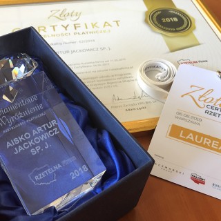 Tym razem zostaliśmy uhonorowani również Diamentowym Certyfikatem Rzetelności. Przyznawane są one firmom, które były laureatem przynajmniej pięciu poprzednich edycji Złotych Certyfikatów.